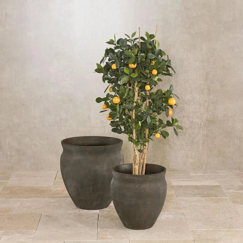 Peel away the dullness from any space with our faux Golden Orange Tree. With glossy, oval-shaped leaves in deep green and vibrant oranges, it's a citrusy delight that's sure to brighten any room. Embrace biophilic design for a mood and motivation boost, without any allergens. Plus, it's cost-effective and low maintenance – no watering, fertilizers, or pruning needed. Say goodbye to wilting and unpleasant odors – this tree stays fresh without the fuss. No assembly required – simply dust with a static feather duster to keep it looking vibrant. Disclaimer: To assist you in selecting the right planter size, the diameter of the tree pot ranges from 15-30 cm. Please ensure your chosen pot, planter, or urn has a larger diameter. Additionally, please note that the height of the trees may vary depending on the tree leaves. If you need more precise guidance, feel free to contact us, and we’ll be happy to provide you with exact measurements and assist you further