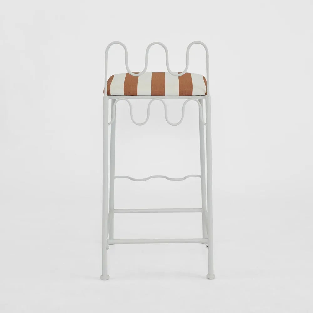 Wira Counter Stool Outdoor Iron Terracotta/White Stripe Cushion PRE ORDER ETA 12/11/2025